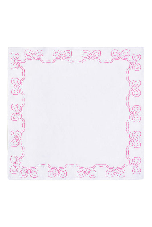 Embroidered Linen Bow Napkins - FESTIVE PINK