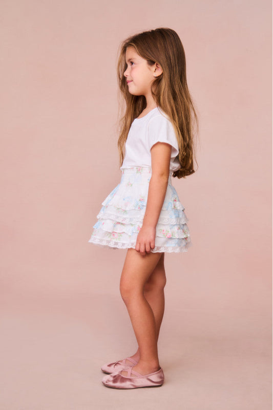 Ruffle Mini Floral Skirt - WHITE MULTI