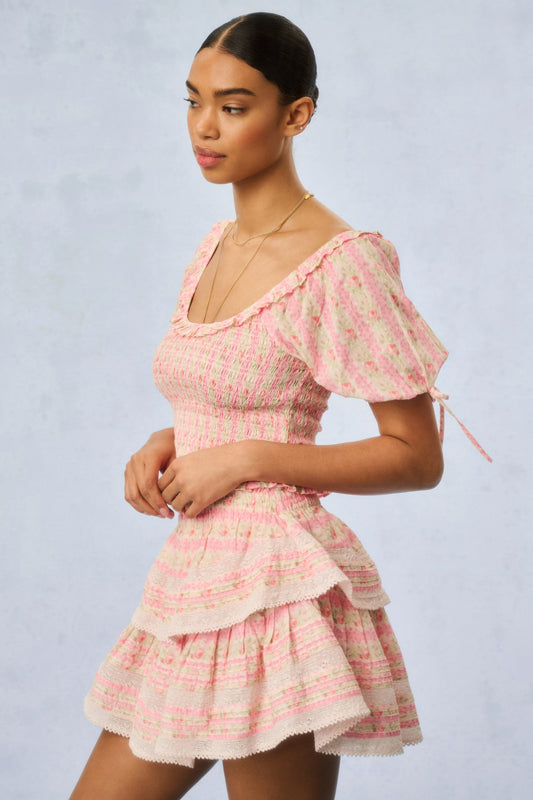 Ruffle Mini Signature Fragrance Print Skirt - STRAWBERRY MACAROON