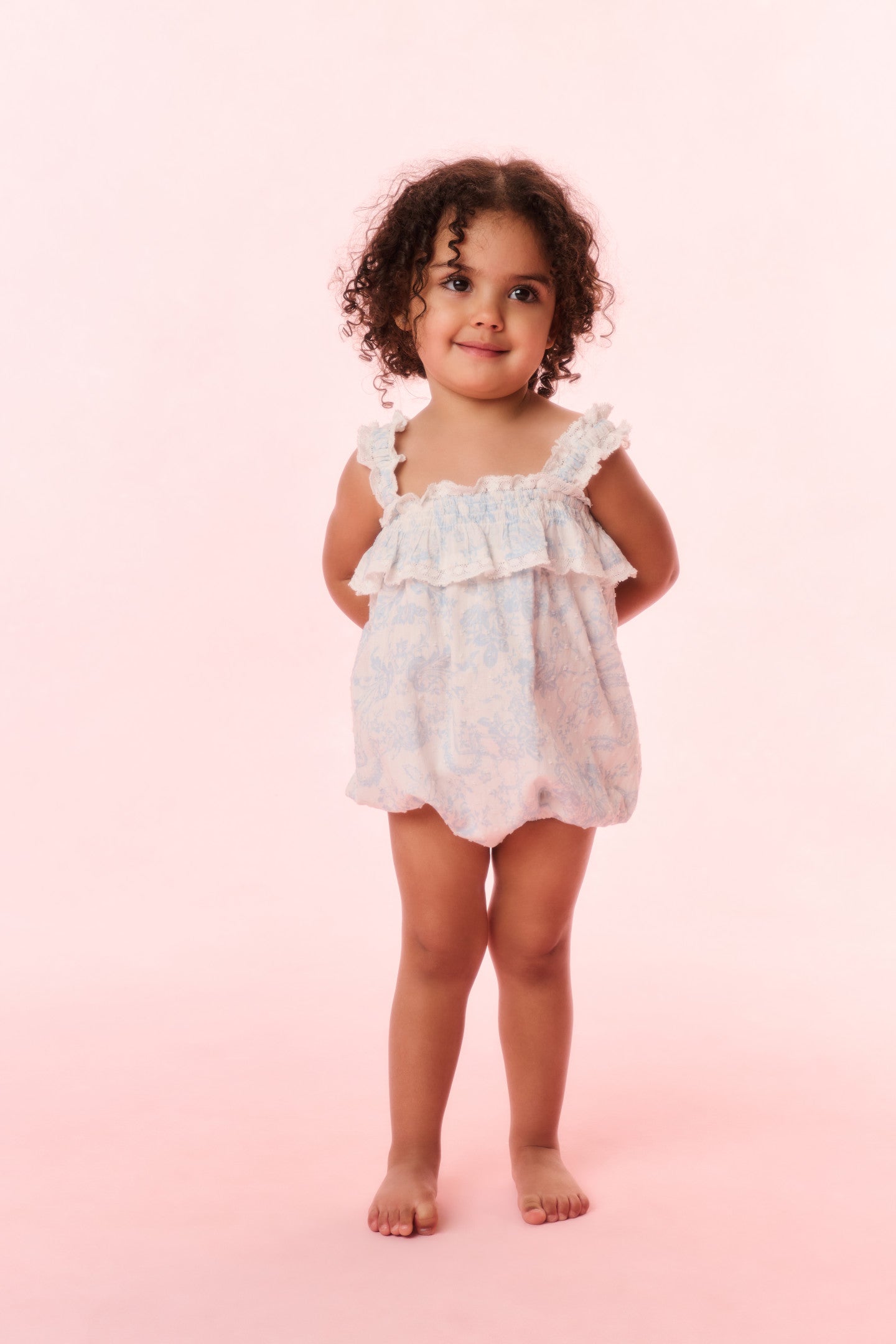 The Nadiana Pinafore returns for our little loves with our new Italian-inspired print of the season. This sweet piece features tank top straps and charming ruffle details all over.