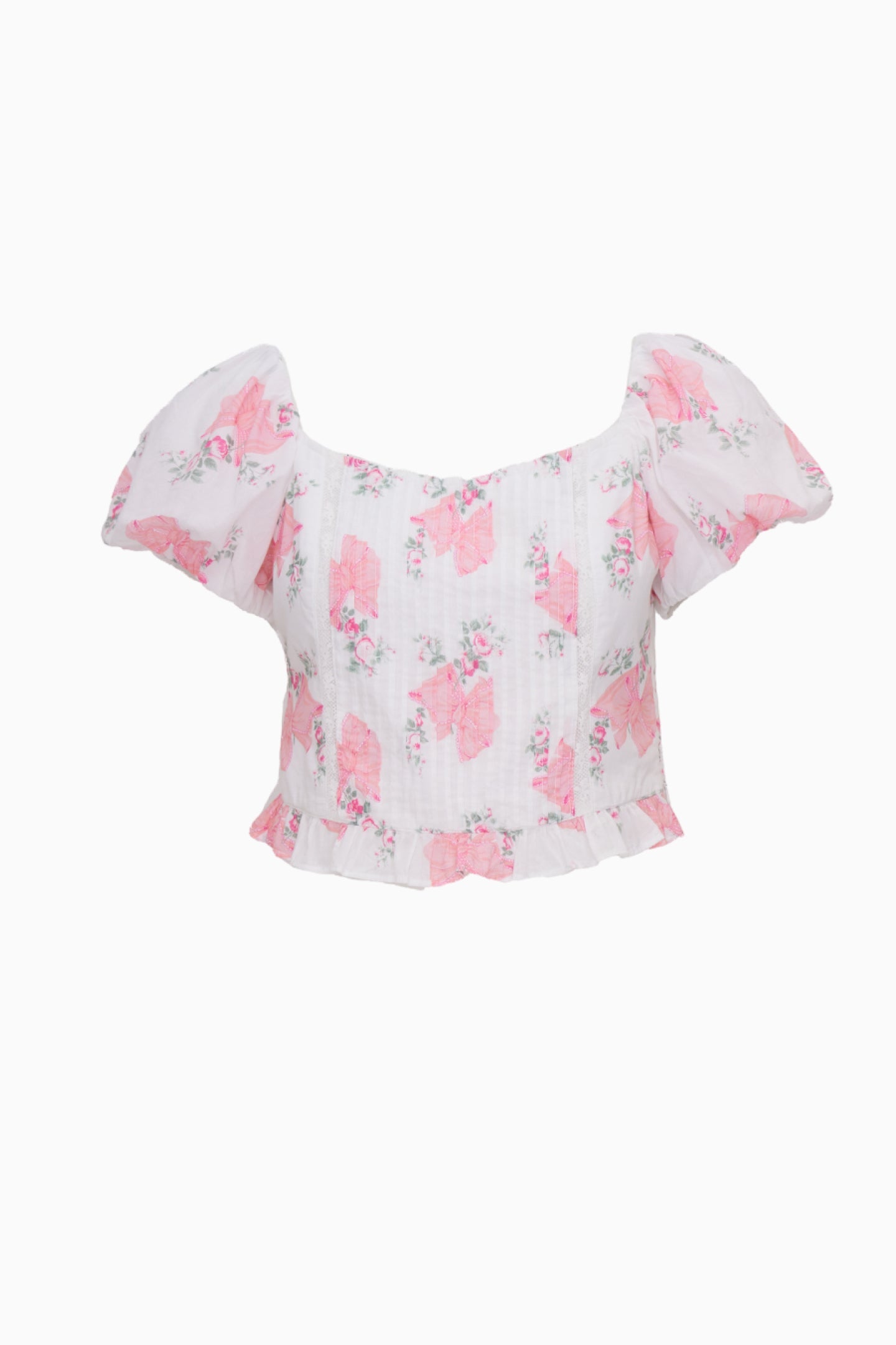Everyone’s favorite Breonna Top returns as part of our Heirloom Print Capsule featuring our signature Rosa Beaux print made-to-match our Hair & Body Perfume Mists. This corset-style top has a wide open neckline with puffed sleeves that can be worn on- or off-the-shoulder. The pintucked bodice is fitted with interior boning and a tiny v-shaped peplum ruffle at bottom.