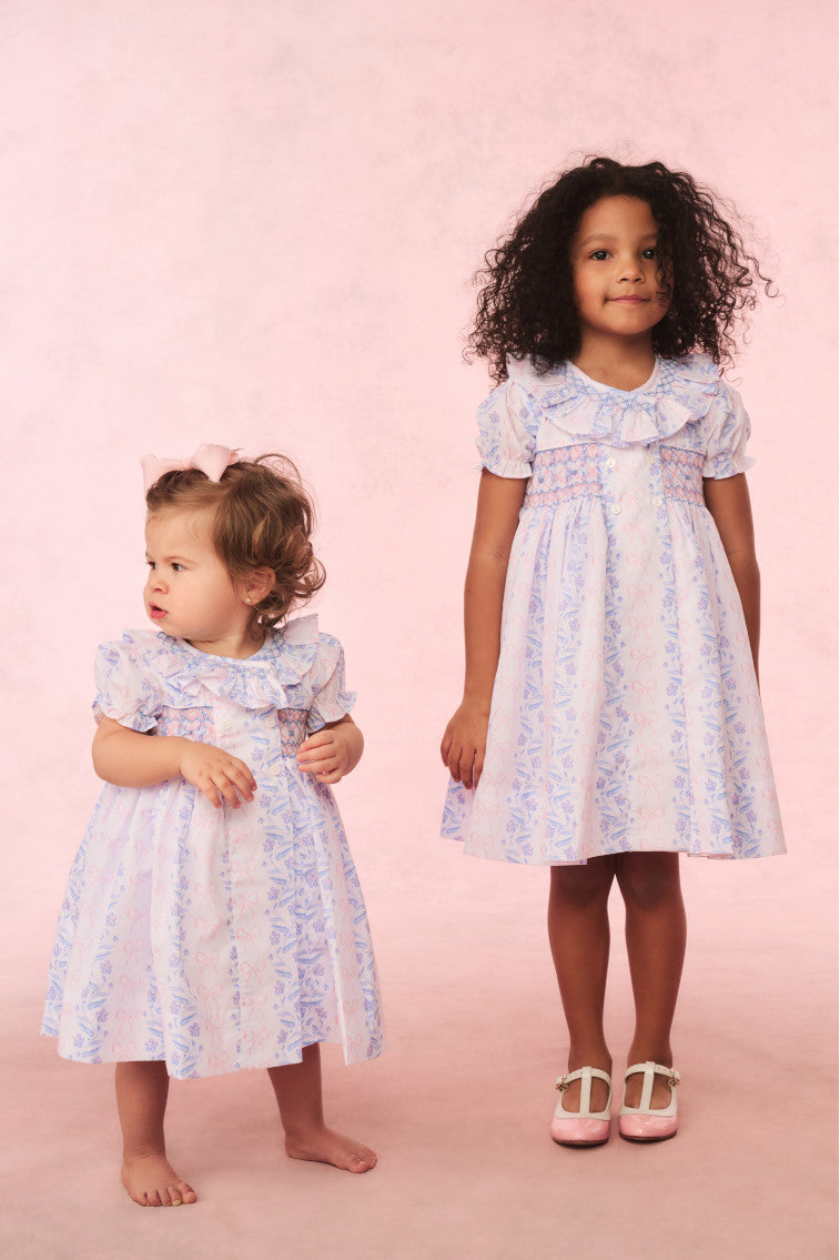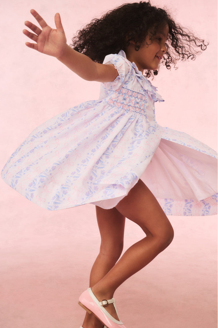 Twirl into a world of charm with this Floral Bow Smocked Dress by Cecil and Lou, featuring delicate pink bows and dreamy blue florals that capture the magic of childhood. With its ruffled neckline and smocked details, this sweet dress is perfect for little ones who love to play, twirl, and shine in timeless elegance.