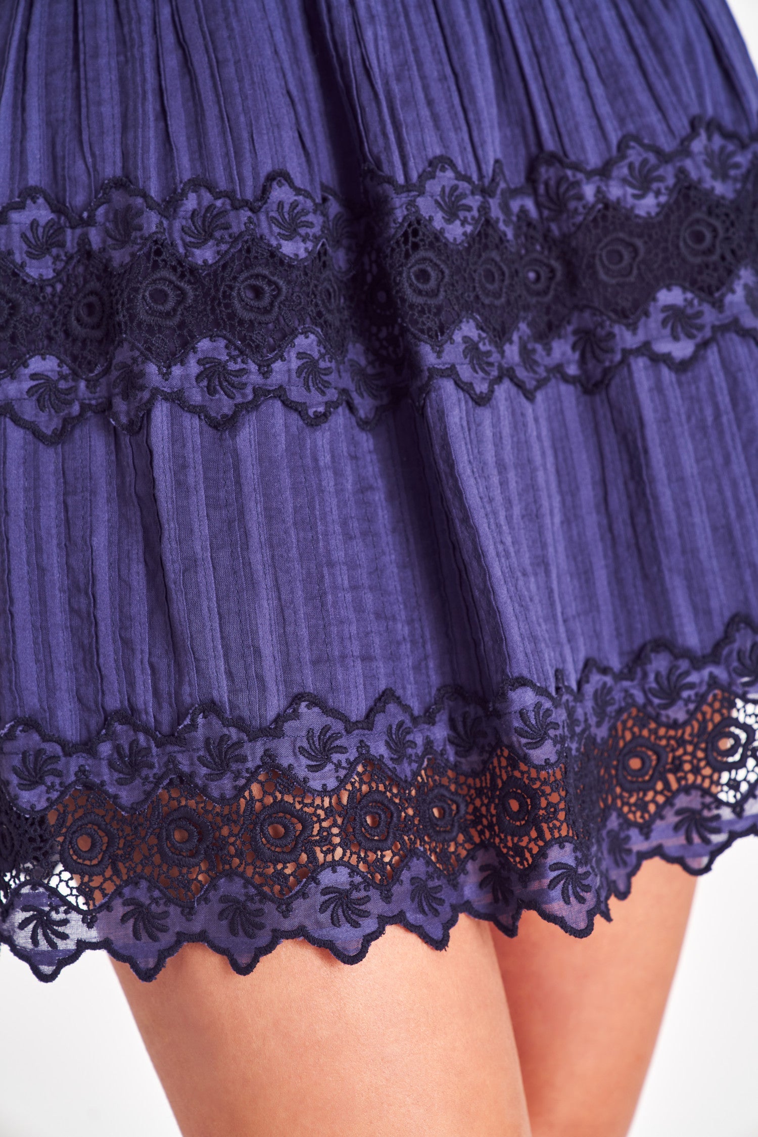 Loving on our Cinnamon Dress. Our new dreamy day dress features a striped cotton dobby fabric with an antique, vintage-inspired feel. This mini includes delicate cutwork embroidery, tucking for texture, custom lace insets, adjustable spaghetti straps, and a side seam zipper for functionality.