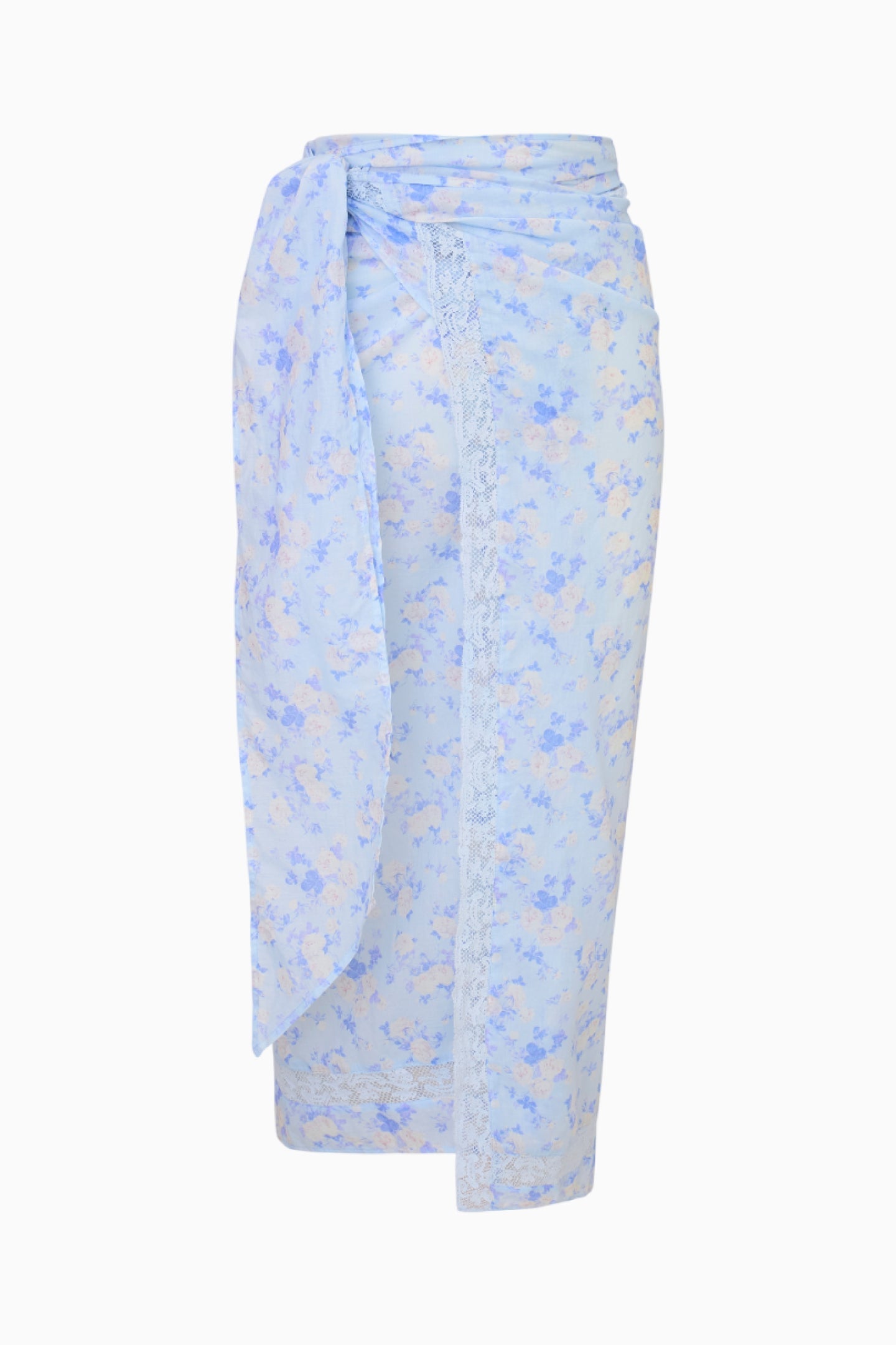 Introducing the Emabella Sarong. This pretty wrap cover-up stuns with our signature fragrance prints and lace trims throughout and a self tie detail. Wear over your favorite swim.