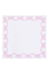 Embroidered Linen Bow Napkins - FESTIVE PINK
