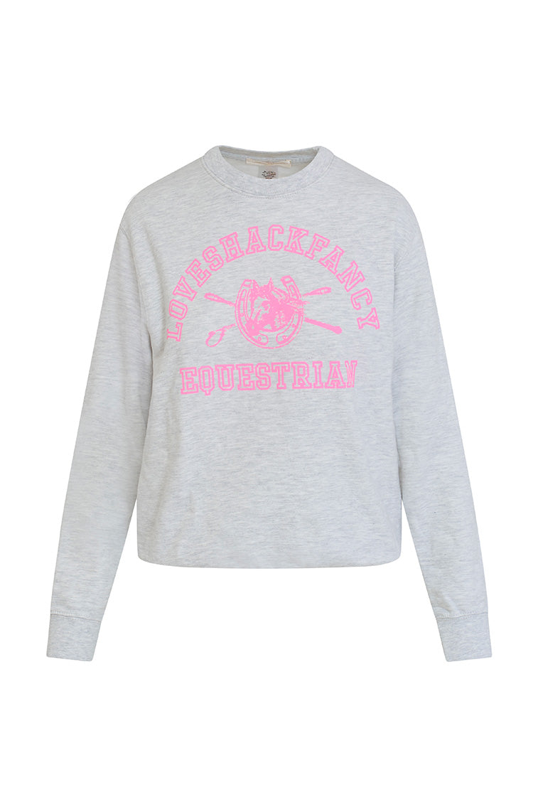 Keep it cozy in our favorite sweatshirt by First Port Crewnecks. These classic fit crewnecks are designed from a premium dyed cotton. Each feature a ribbed collar, cuffs, and hem. All of these collegiate-inspired crewnecks have a LoveShackFancy Equestrian print made in the USA using sustainable US grown materials.