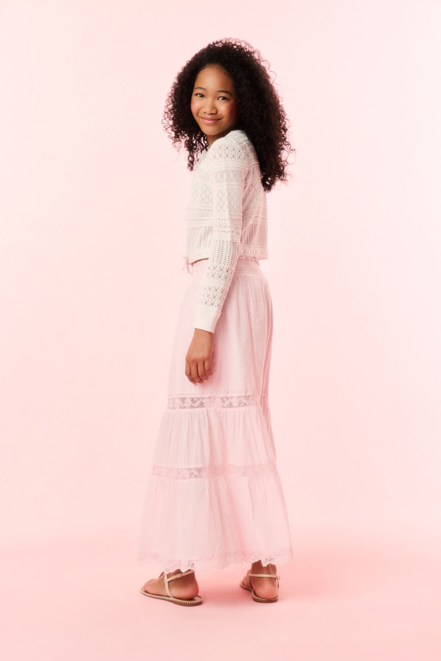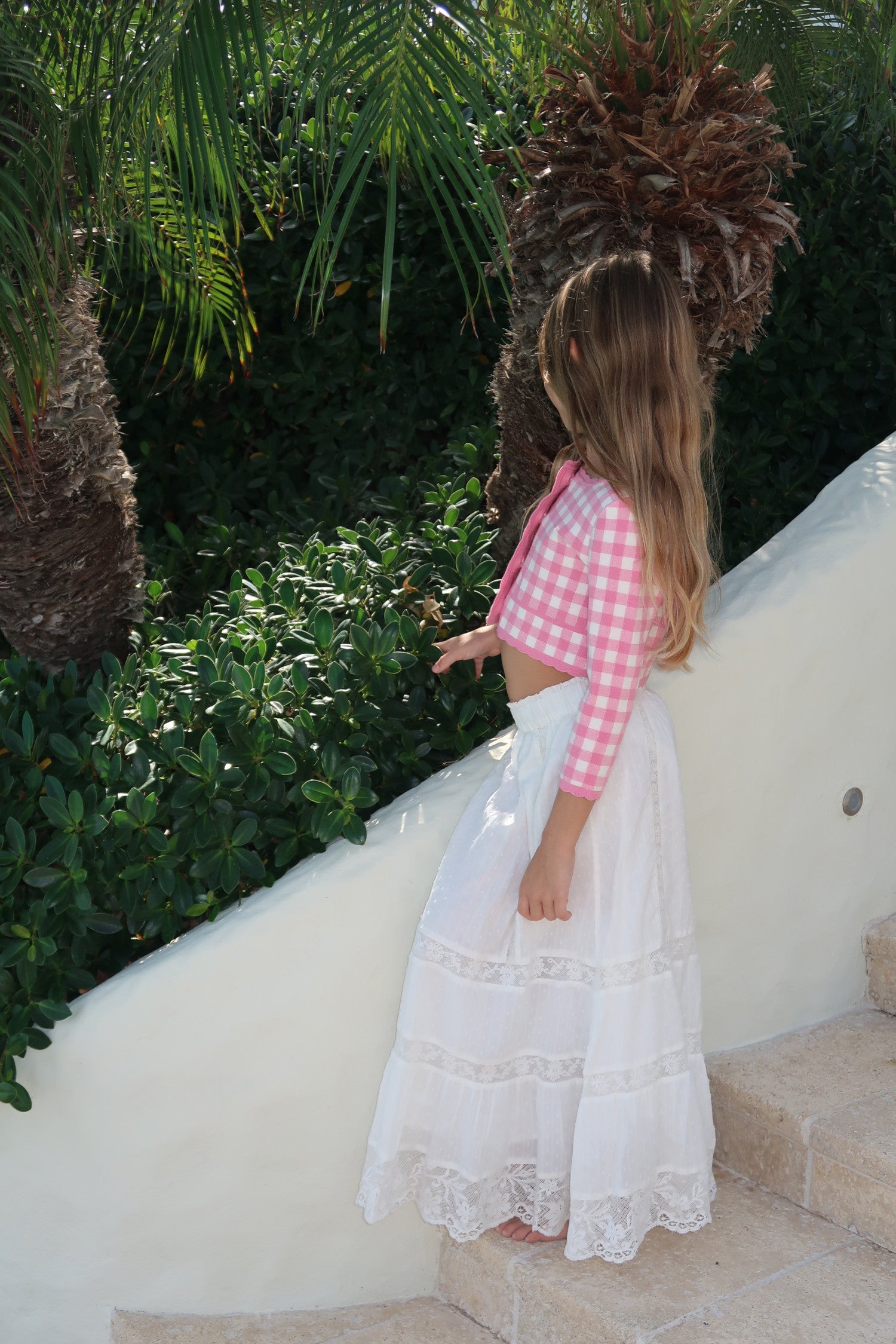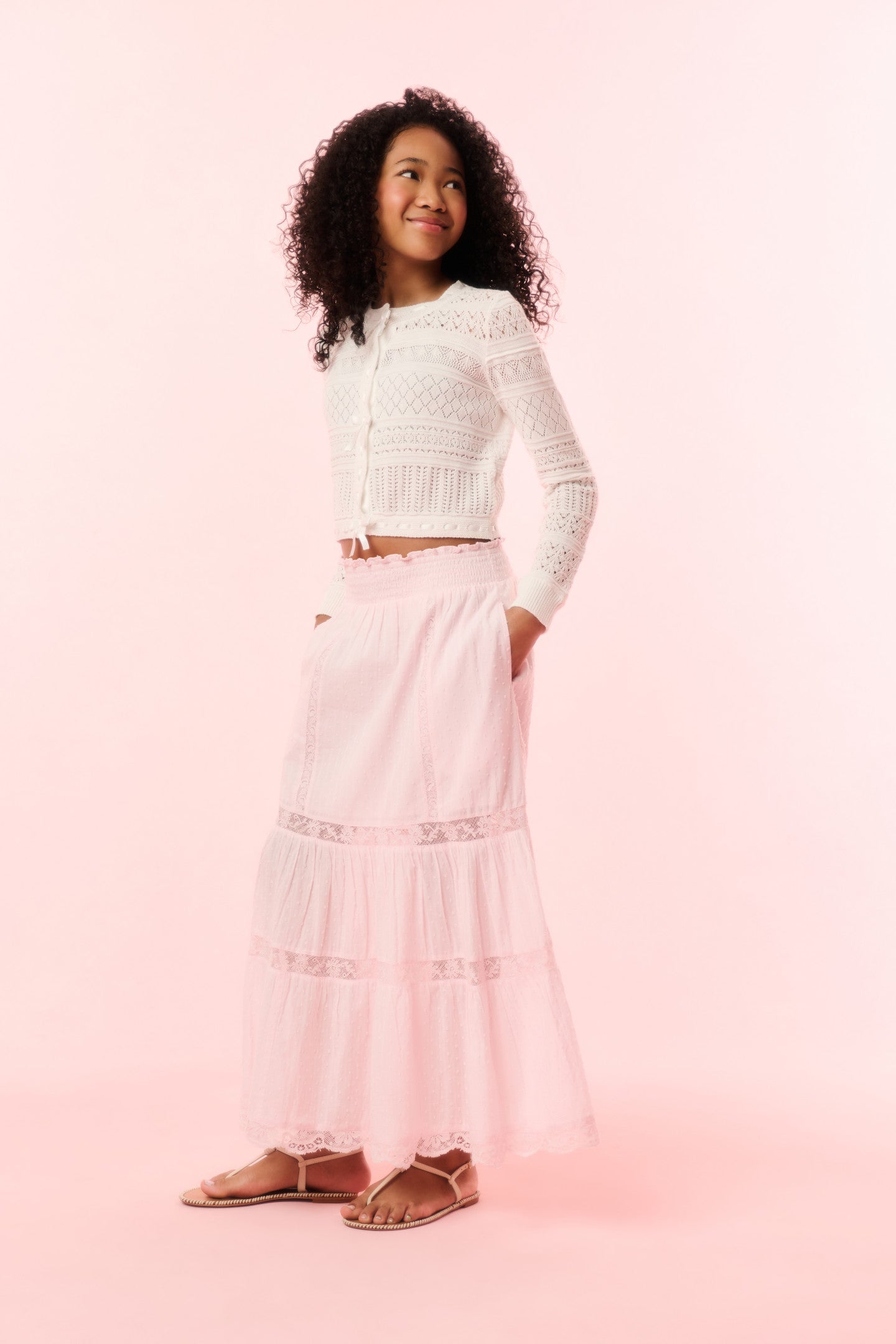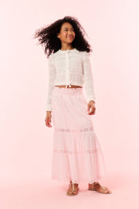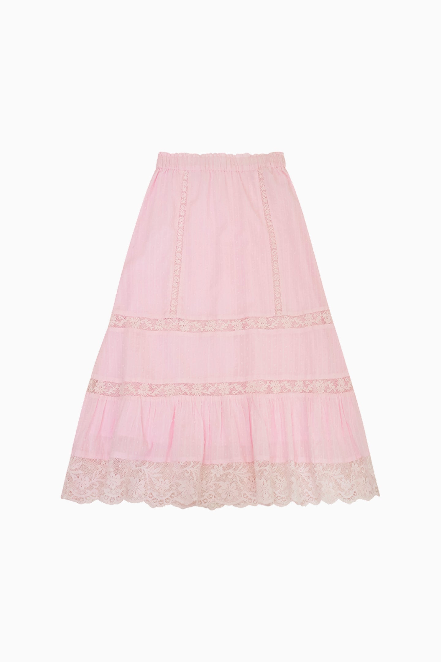 The Donella Skirt is always in style. This stunning, Victorian-inspired piece features elastication at the waistband for ease and comfort and lace trims throughout.