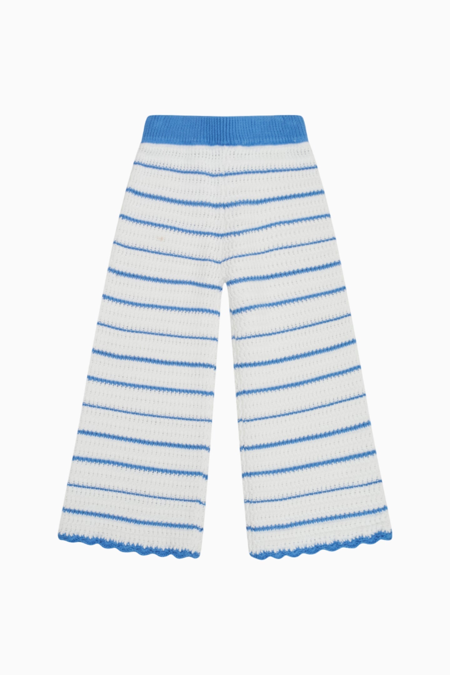Feeling cute in the Fawna Pant. These summertime bottoms arrive with a knit crochet fabric featuring stripes woven throughout and a scallop detail at the leg holes. Airy and loose, the pants are finished with elastication at the waistband for ease and comfort. Pair with Floraine Cardigan for a full set.