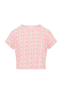 Our best-selling Mini Rubin Tee returns for our girls in our signature floral prints. Our hero shaped, cropped tee comes in a stretch fabric. This girly muscle tee has a loose circle neck, cap sleeves, and a cropped bottom hem. It’s the perfect everyday essential.