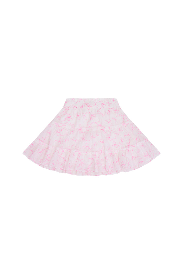 Pretty in pink in the Raf Skirt. This airy mini features our signature prints with an elasticated waistband, three tiers, and tiny ruffle details.