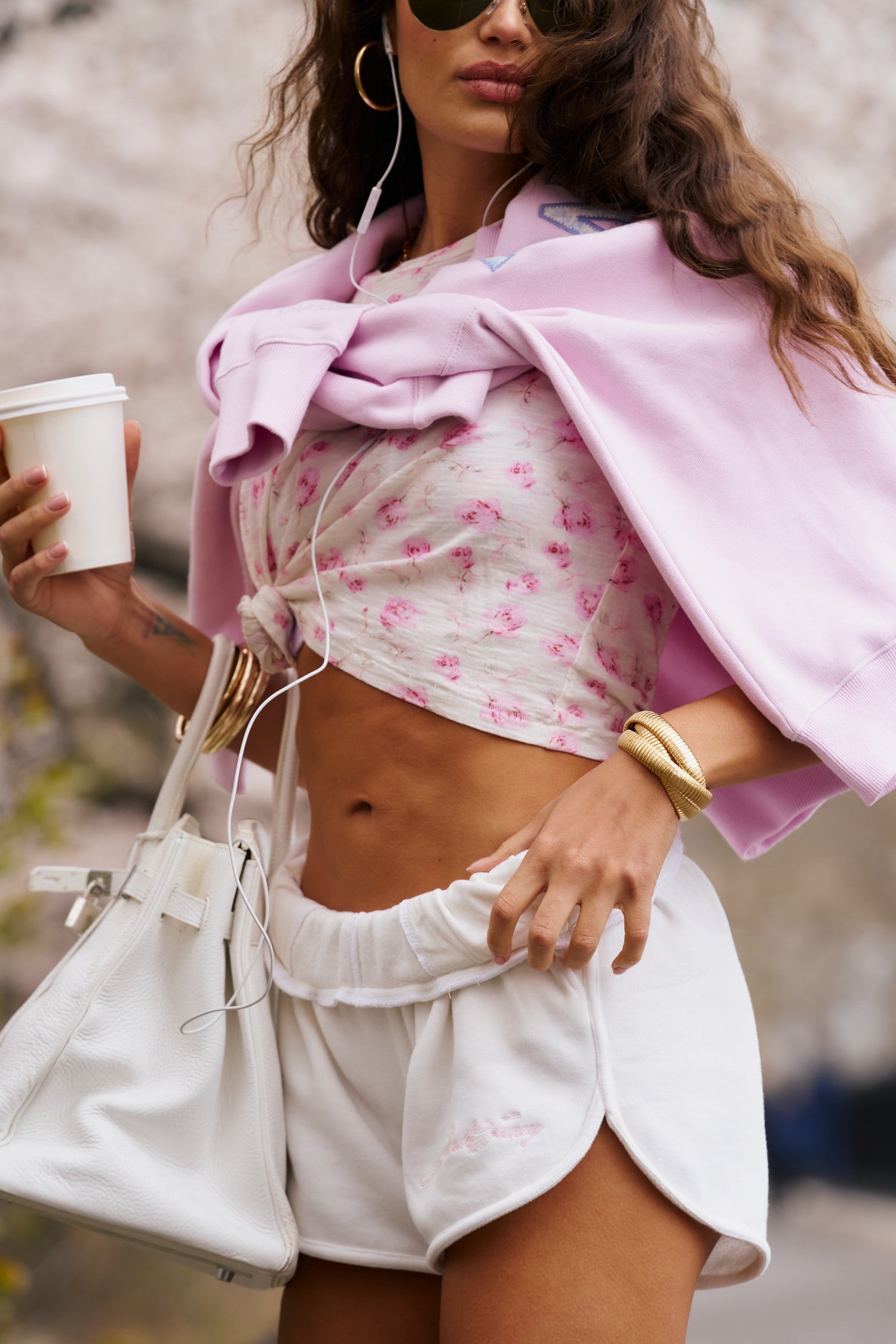 Extra sweet in the Jeanette Shorts. These easy fitted bottoms arrive in our beloved brushed back fleece giving it that extra cozy and comfy feeling. Printed on a cotton voile fabric, the shorts feature a top-applied USA adornment on the back with a satin stitch around the lettering. The shorts hike up on the sides for a playful silhouette. Each pair features elastication at the waistband for ease and comfort. Pair with the Sellina Pullover for the full sweat set.