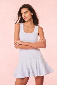 Introducing the Maryanne Dress. This easy, fit-to-flare mini is cozy chic designed from a scallop knit stitched fabric. The dress stuns with scallop trim detail along the armholes and neckline while beautiful godet insets line the piece.