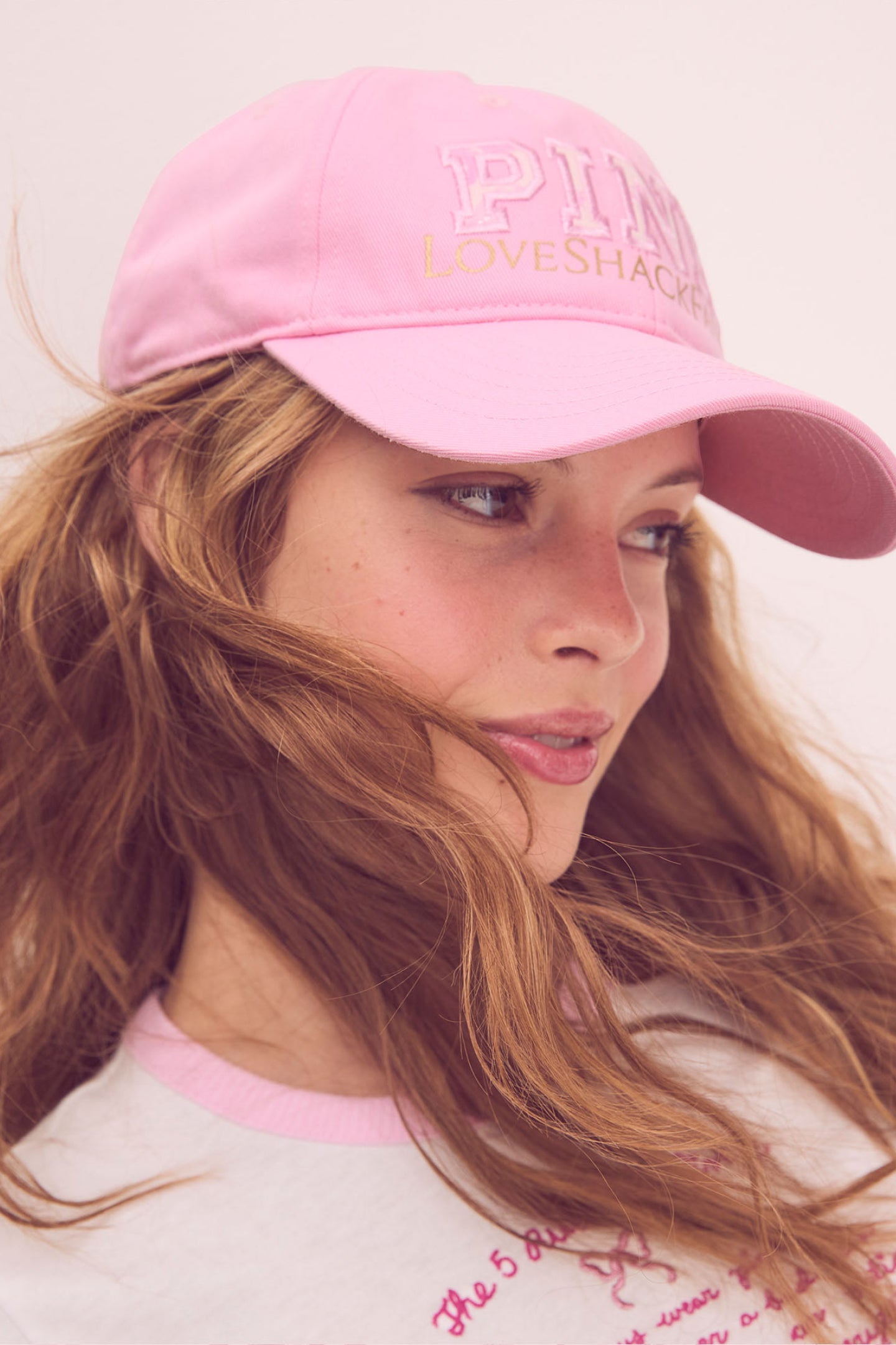 Introducing the Baseball Hat from the exclusive, limited-edition PINK x LoveShackFancy collaboration. The ‘fit finisher that goes with everything (even bad hair days). This cute cap gets an iconic update thanks to sweet PINK x LoveShackFancy logo deets.