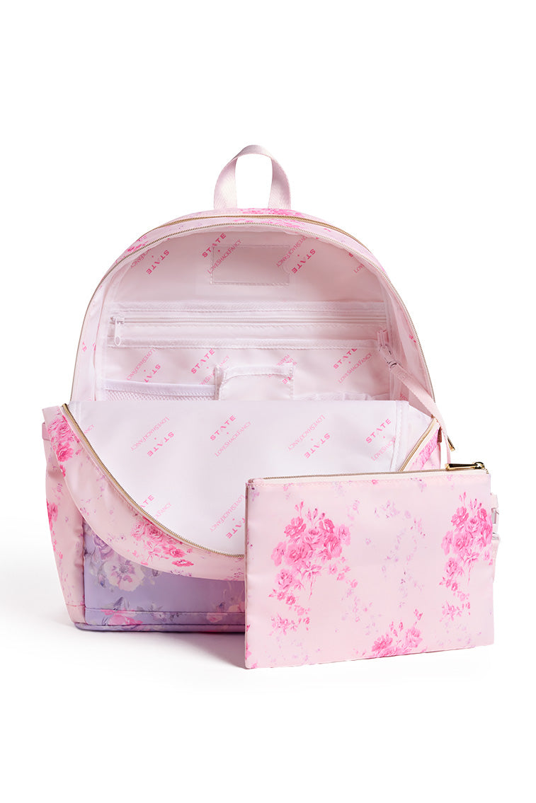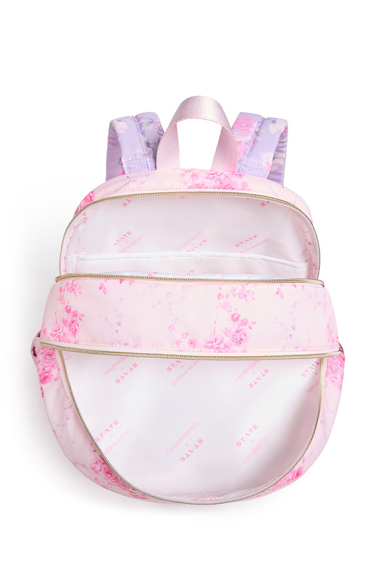Introducing the Kane Kids Backpack. This best-selling backpack from our limited-edition collaboration with STATE Bags features our signature, Happy Thoughts print – a vintage-inspired floral, adding a sweet touch of love to your little love’s look. The bag features a handy luggage sleeve in the back making it the perfect on-the-go essential for school, trips, and beyond.